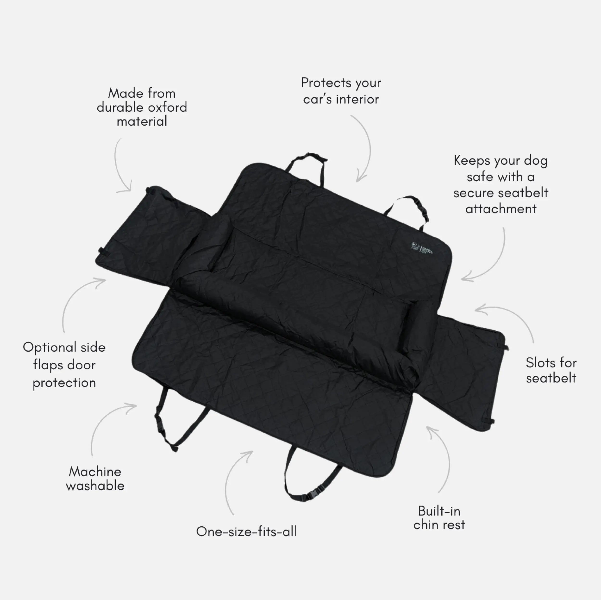 The only car protector to feature a luxurious built-in chin rest! Let your pup rest their head in ultimate comfort during those long drives.