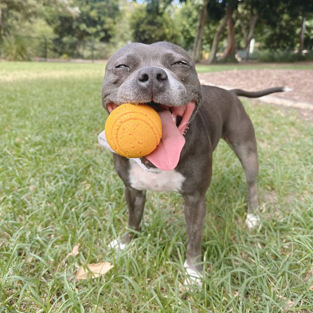 Crafted from tough rubber, this ball is built to outlast any tennis ball but is not intended to be used as a chew toy. It is designed for long-lasting games of fetch and play.