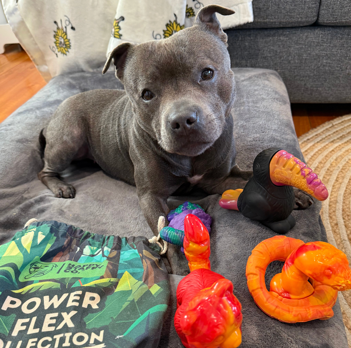 You’ll get 15 of our best-selling toys, ranging from ultra-tough Chewzilla® toys to PowerFlex™ rubber favourites and fun, engaging playtime pieces — plus 3.4kg of healthy, all-natural treats your pup will love.