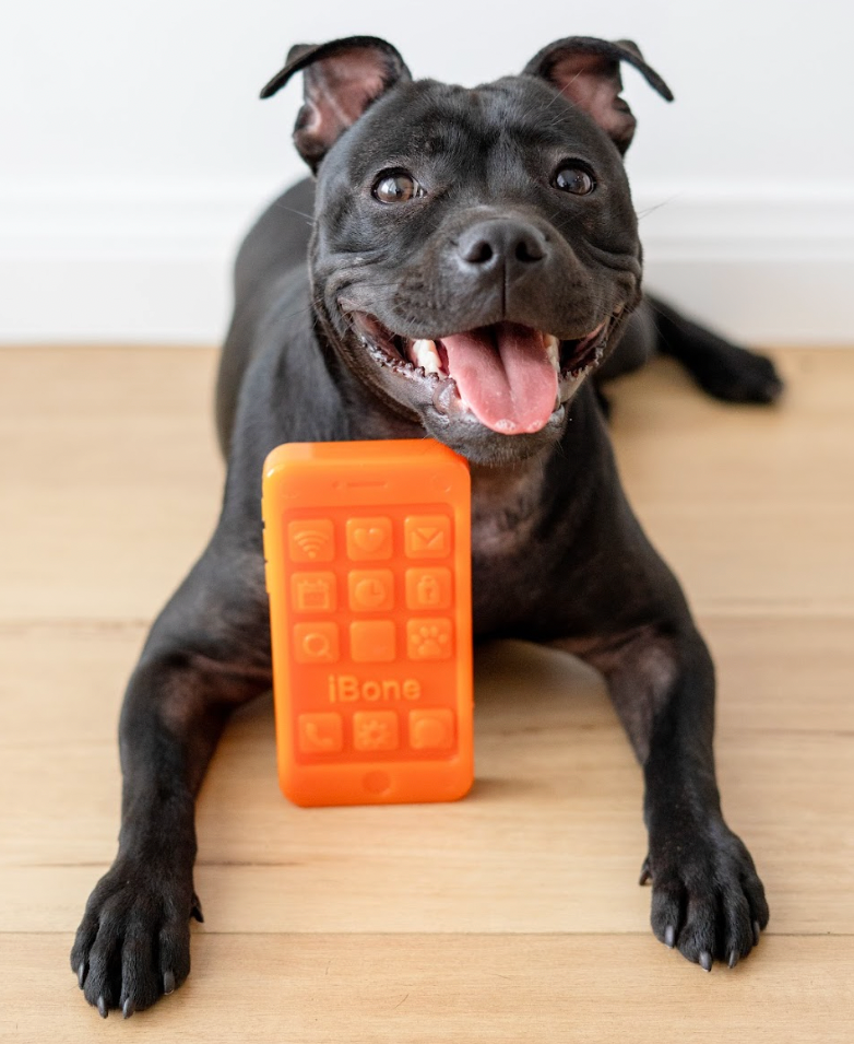 This 100% ToughTech™ Nylon chew toy is shaped like an iPhone and built for the dogs who destroy everything.