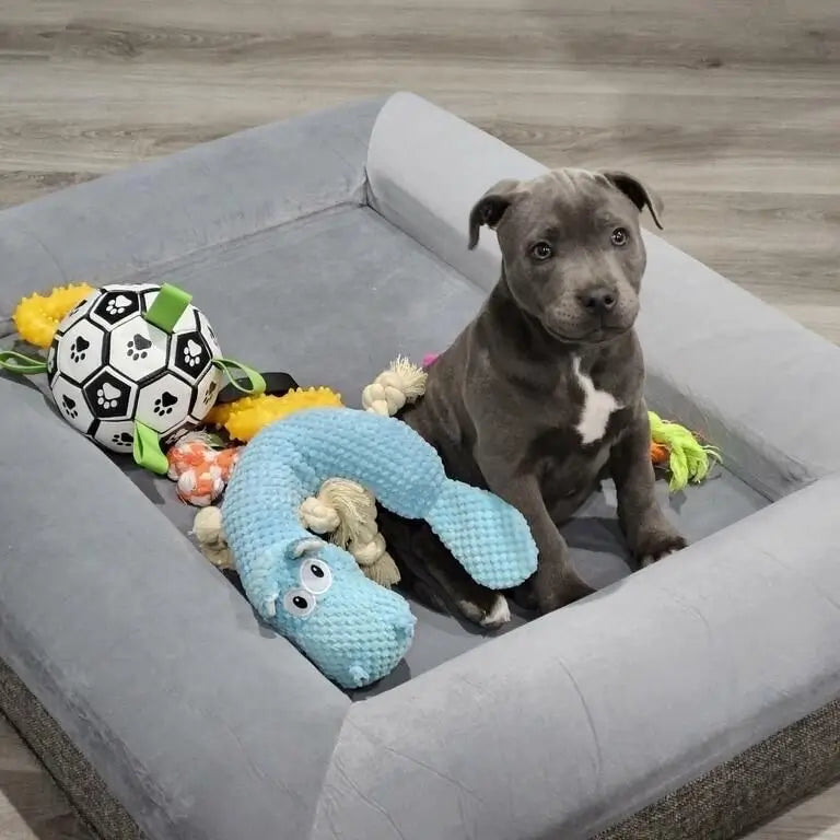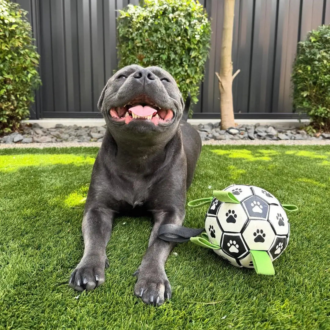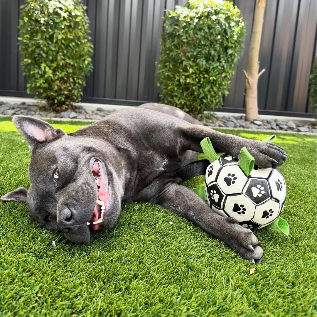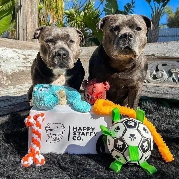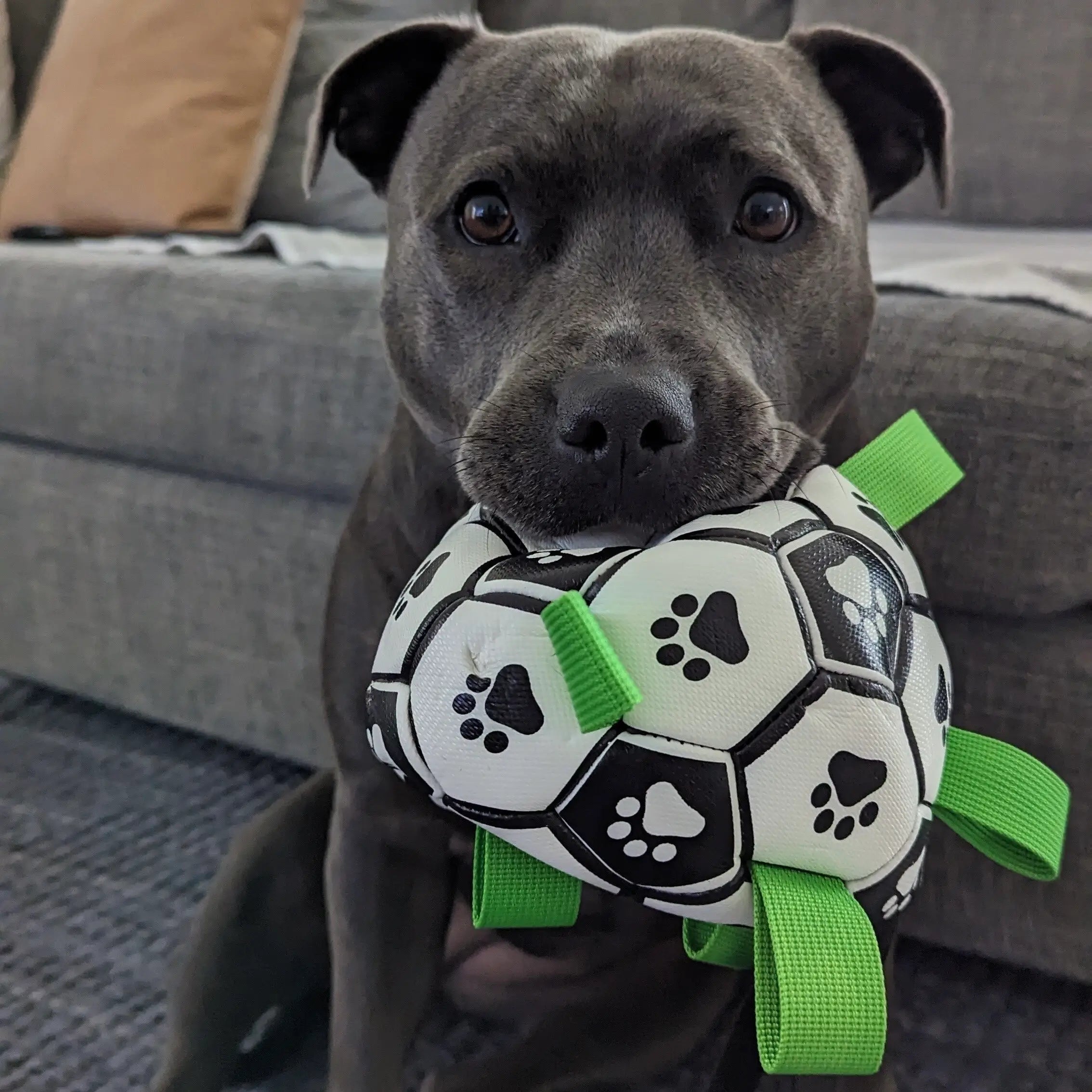 With new and improved tug handles, it’s the ultimate interactive toy for fetch, tug-o-war, and zoomies around the park. Soft, lightweight, and full of bounce, it’s made for fun, connection, and burning off that Staffy energy.
