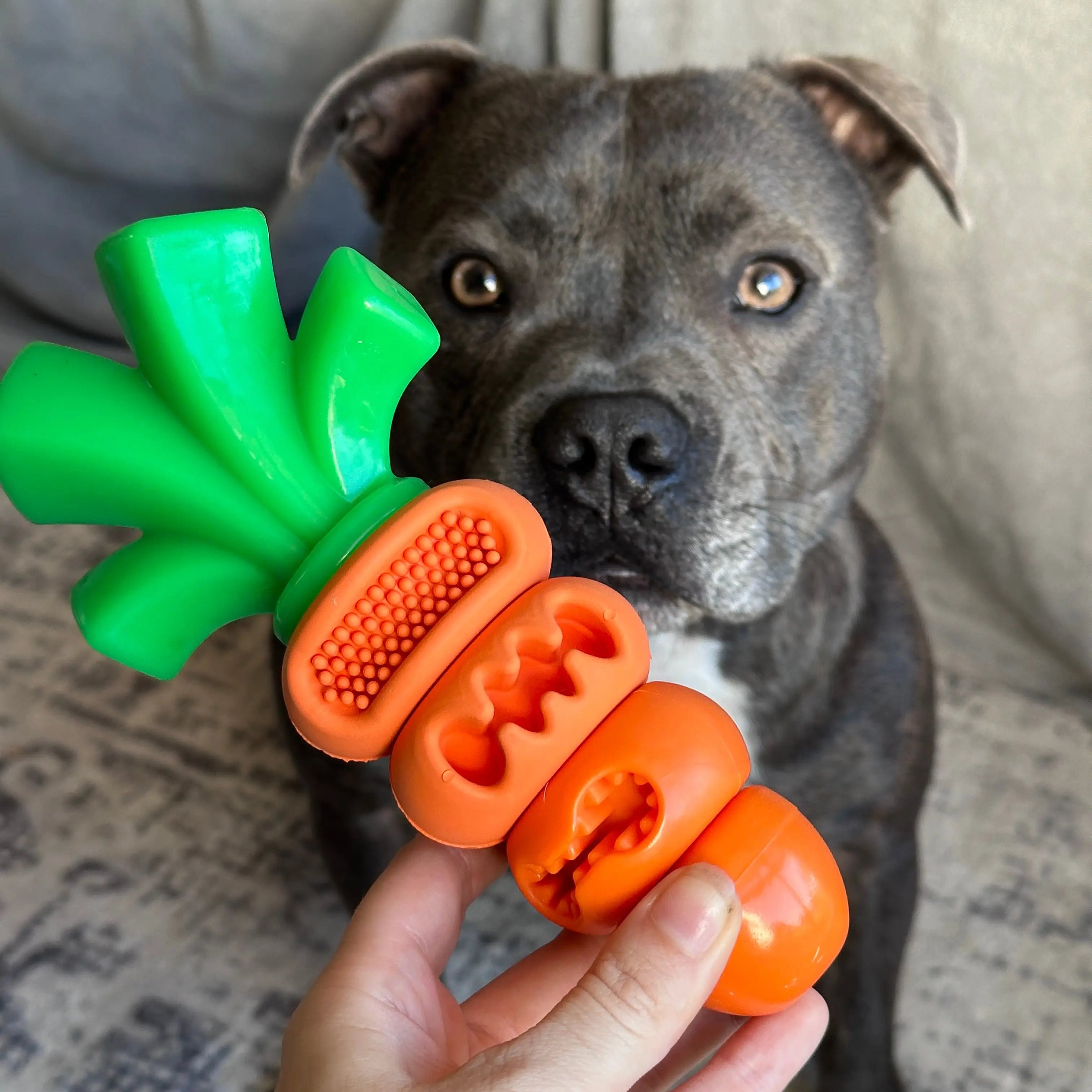 Shaped like a tasty carrot, this tough toy is made from a clever combo of natural rubber and our famous ToughTech Nylon – giving it the perfect mix of give and durability for serious chewers.