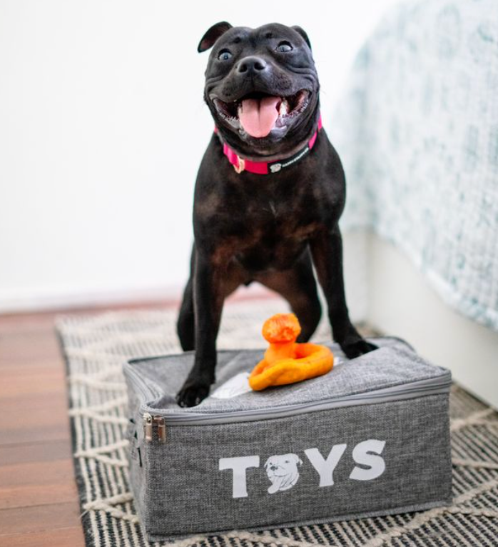 Featuring sleek, limited-edition Happy Staffy Co branding, the Toy Storage Box is a functional piece that also complements your home décor.