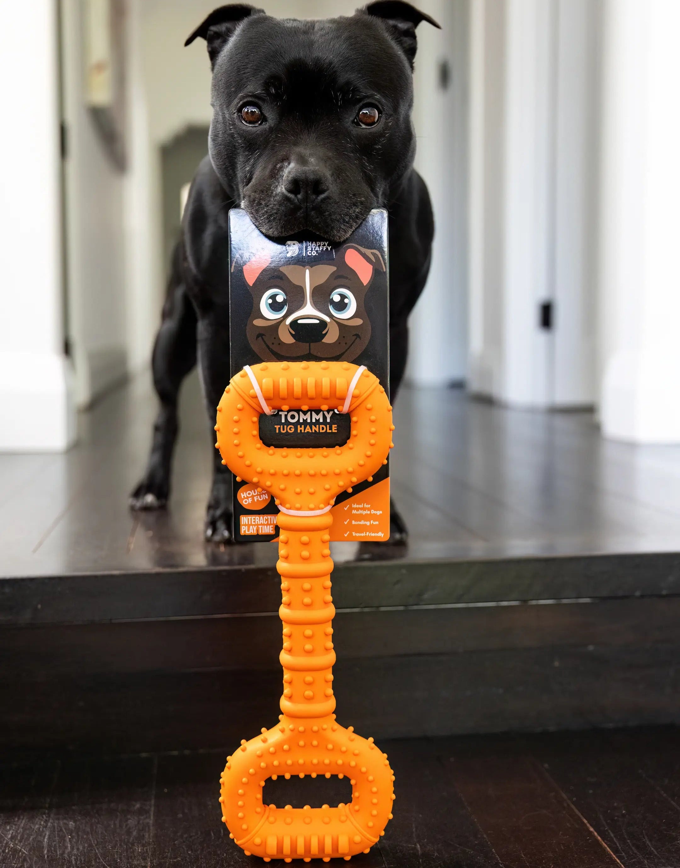 This best-selling tug toy is built for serious fun. Whether your dog loves solo play or a good old-fashioned tug session with their human or furry friend, the Tommy Tug Handle is a fan favourite. It’s strong, flexible and just the right size for Staffy-strength games of tug-o-war.